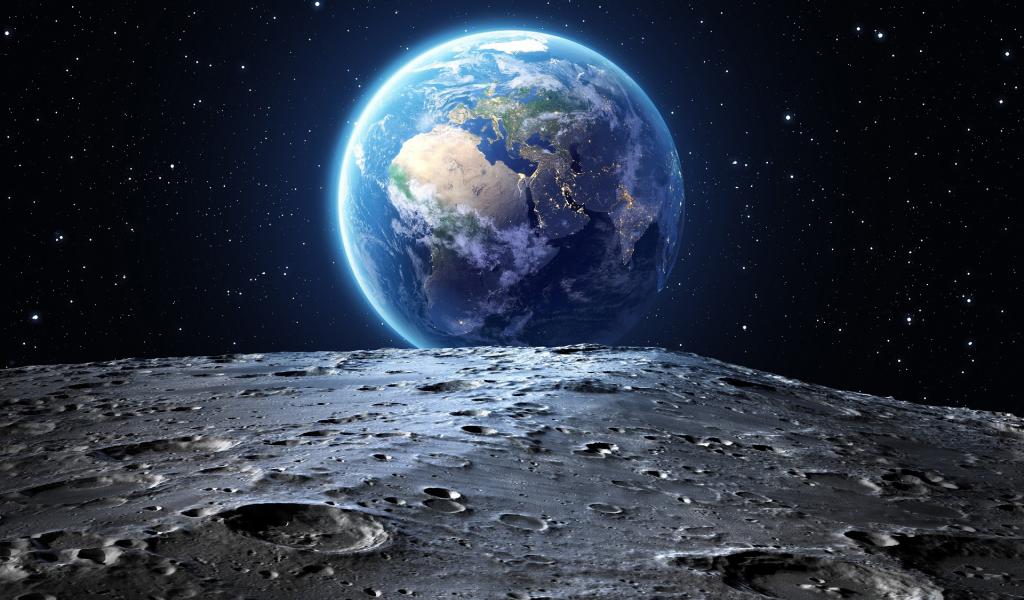 Обои Вид на планету Земля с поверхности Луны