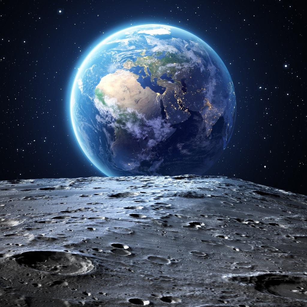 Обои Вид на планету Земля с поверхности Луны