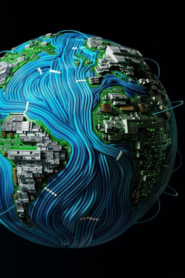 Обои Планета земля окутана проводами на черном фоне