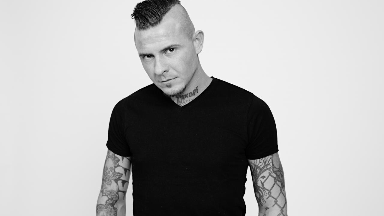 Обои Мужчина в черной футболке с татуировками на теле