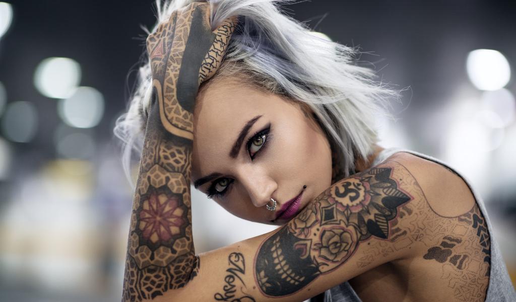 Обои Татуировки на теле красивой девушки с пирсингом в носу