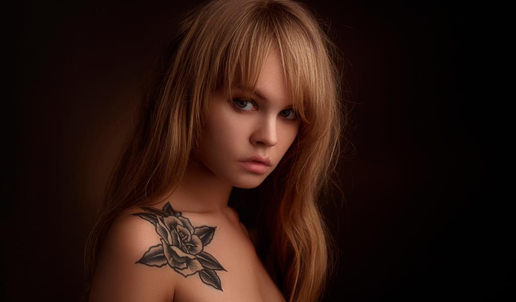 Обои Татуировка роза на лопатке у красивой девушки