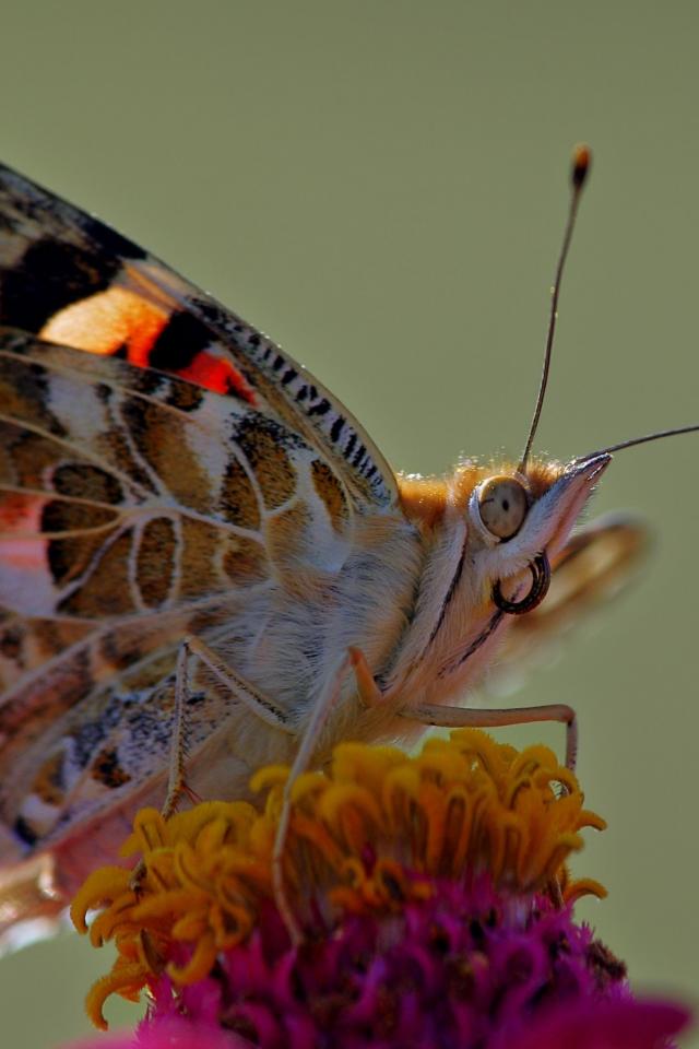 Обои Бабочка сидит на розовом цветке, макросъемка