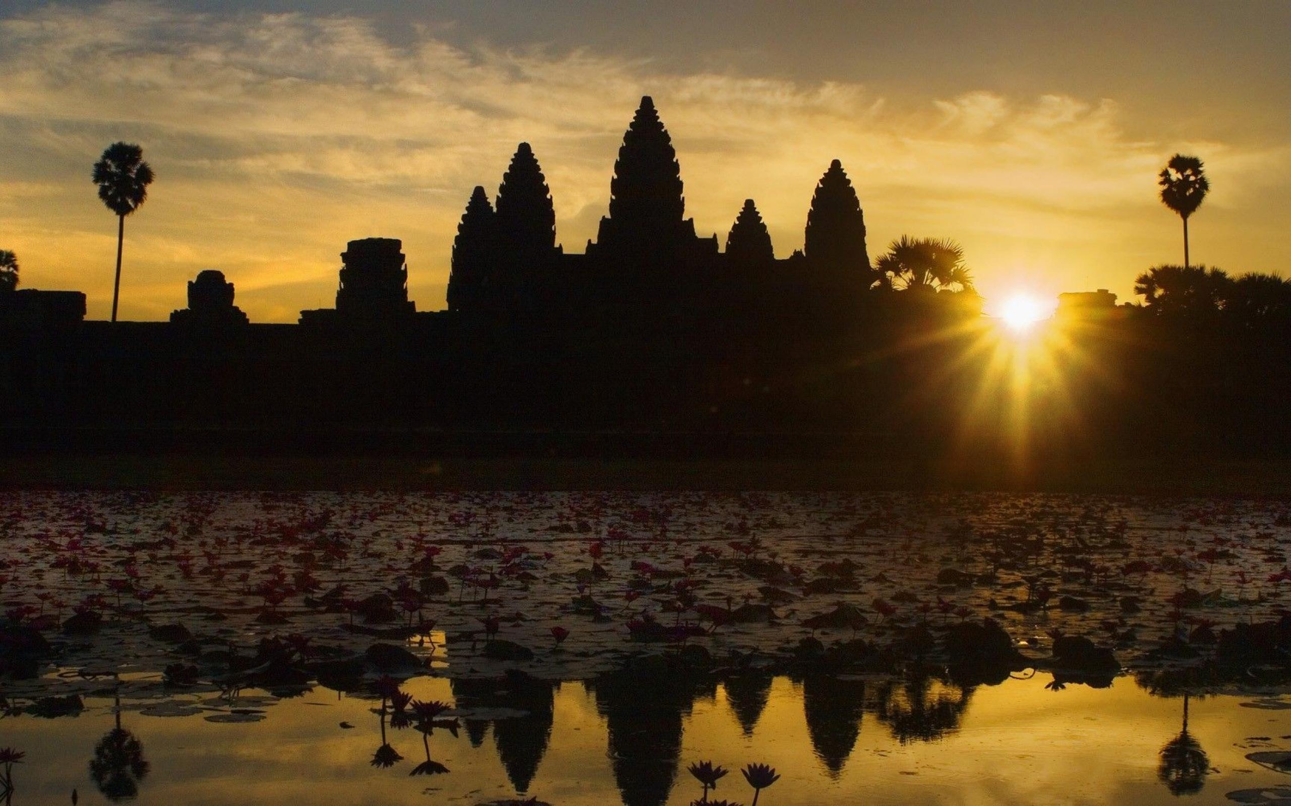 Обои Ангкор Ват в лучах солнца на закате