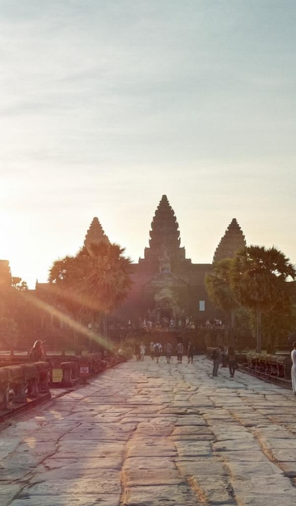 Обои Аллея на закате у храмового комплекса Ангкор Ват в Камбодже