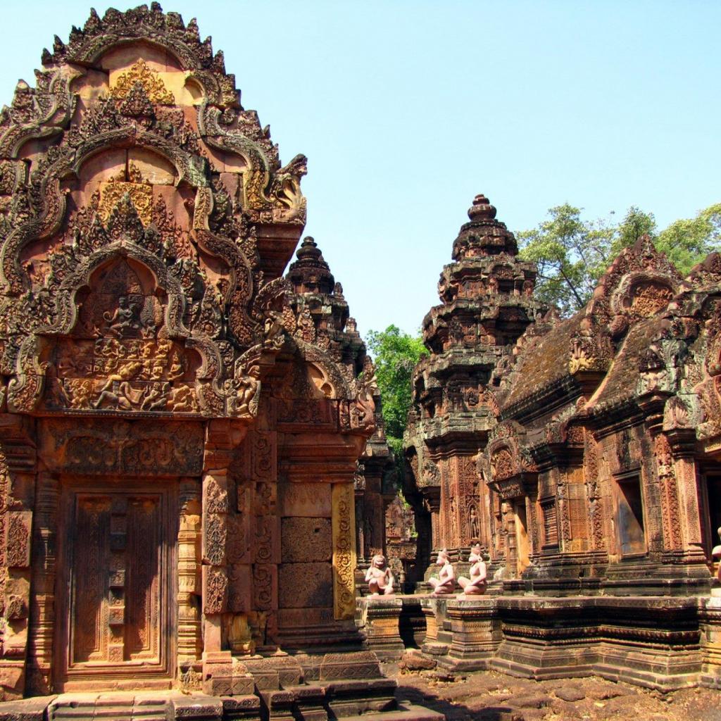 Обои Стены древнего храма Бантей Срей, Камбоджа