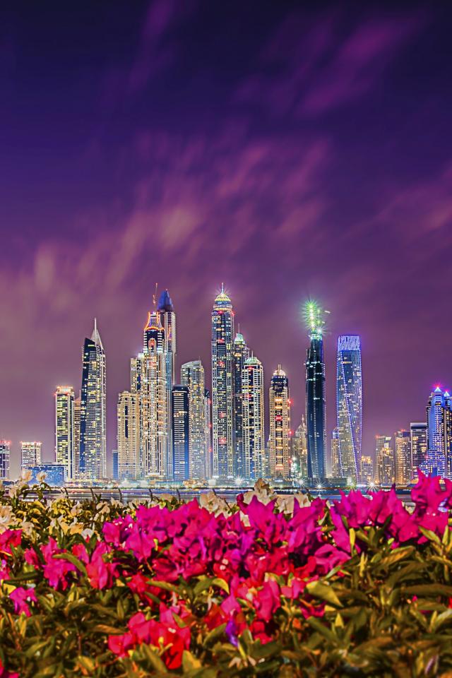 Обои Вид на ночные небоскребы Дубая