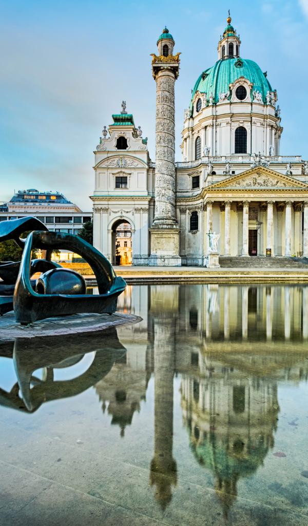 Обои Фонтан у католической церкви Карлскирхе , Вена. Австрия
