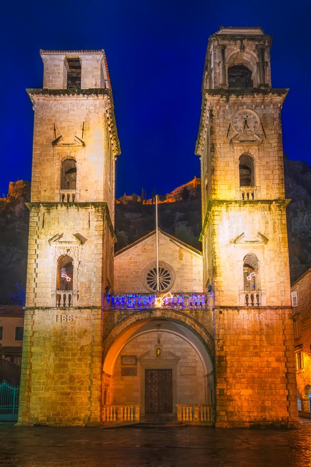 Обои Вид на Собор Святого Трифона ночью, Черногория