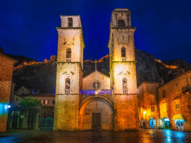 Обои Вид на Собор Святого Трифона ночью, Черногория