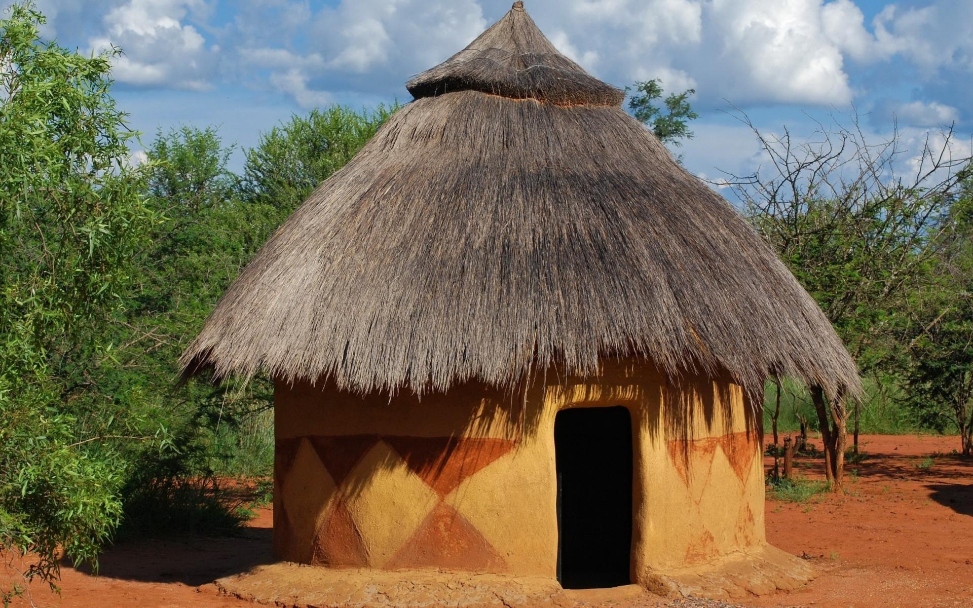 Обои Глиняный дом на земле в Африке