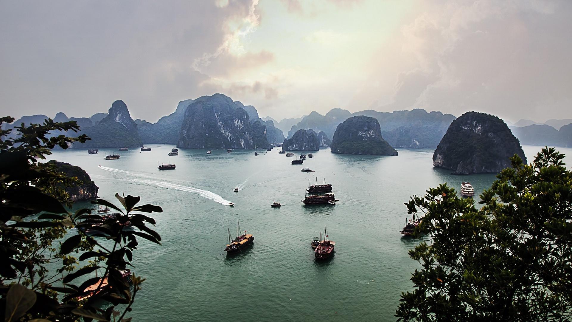Обои Корабли в бухте Халонг, Вьетнам