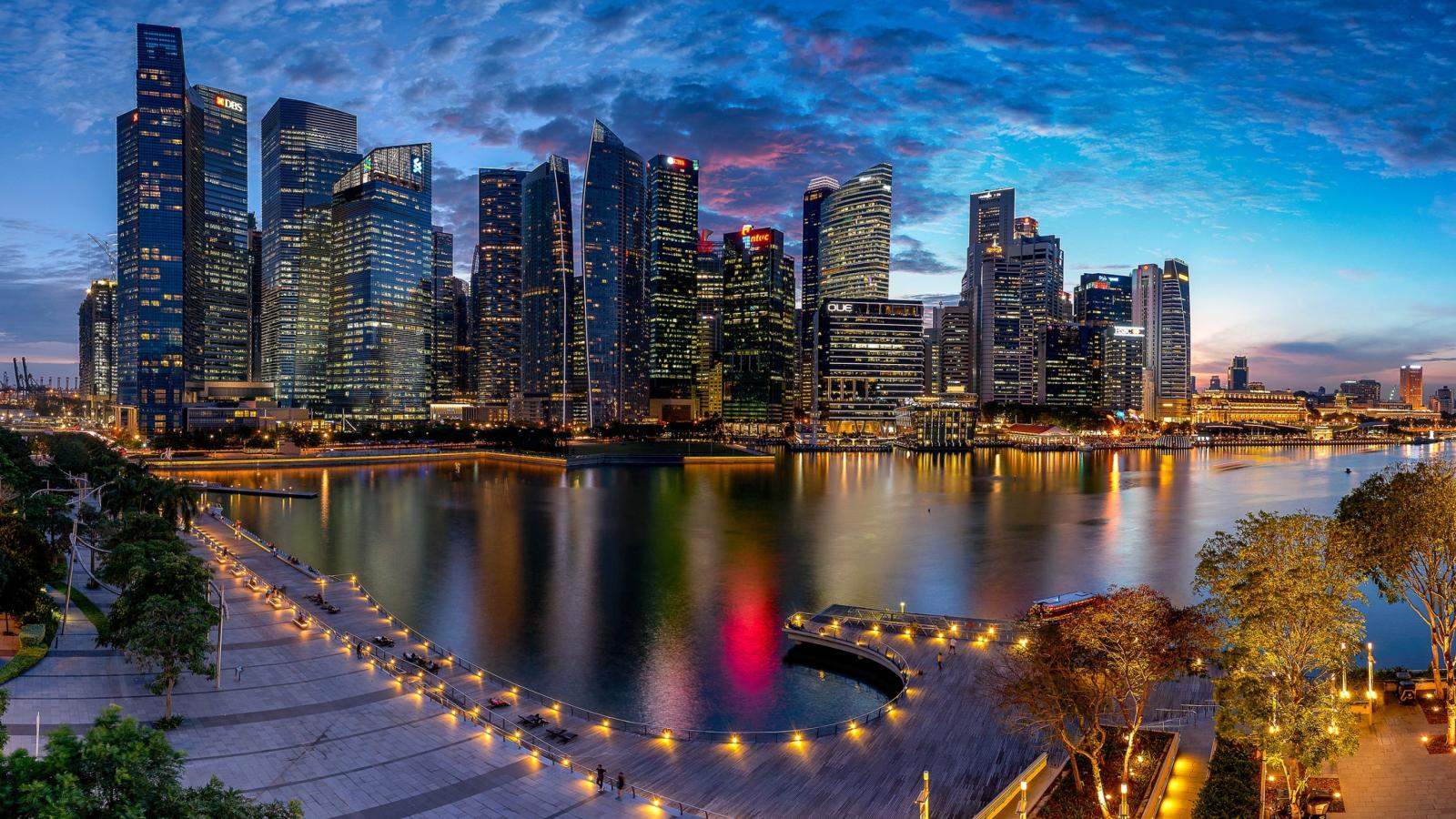 Обои Небоскребы и гавань ночного Сингапура, Азия