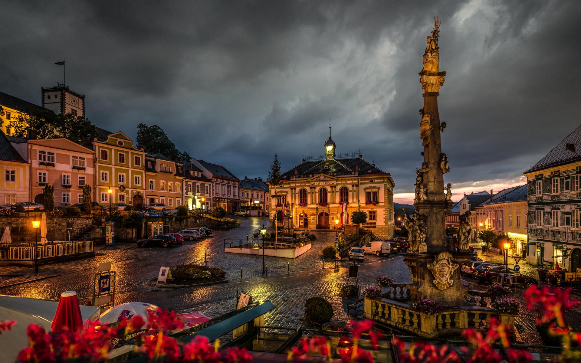 Обои Вид на ночной город под пасмурным небом, Австрия