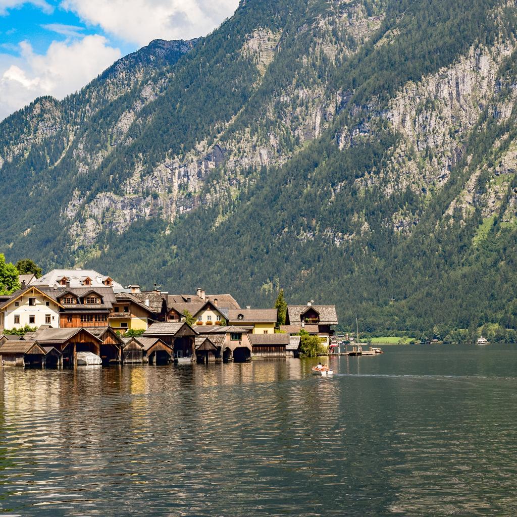 Обои Дома на берегу залива у горы, Австрия