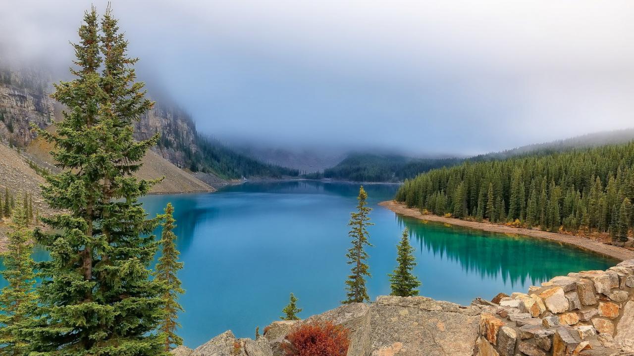 Обои Туманное озеро в национальном парке Банф, Канада