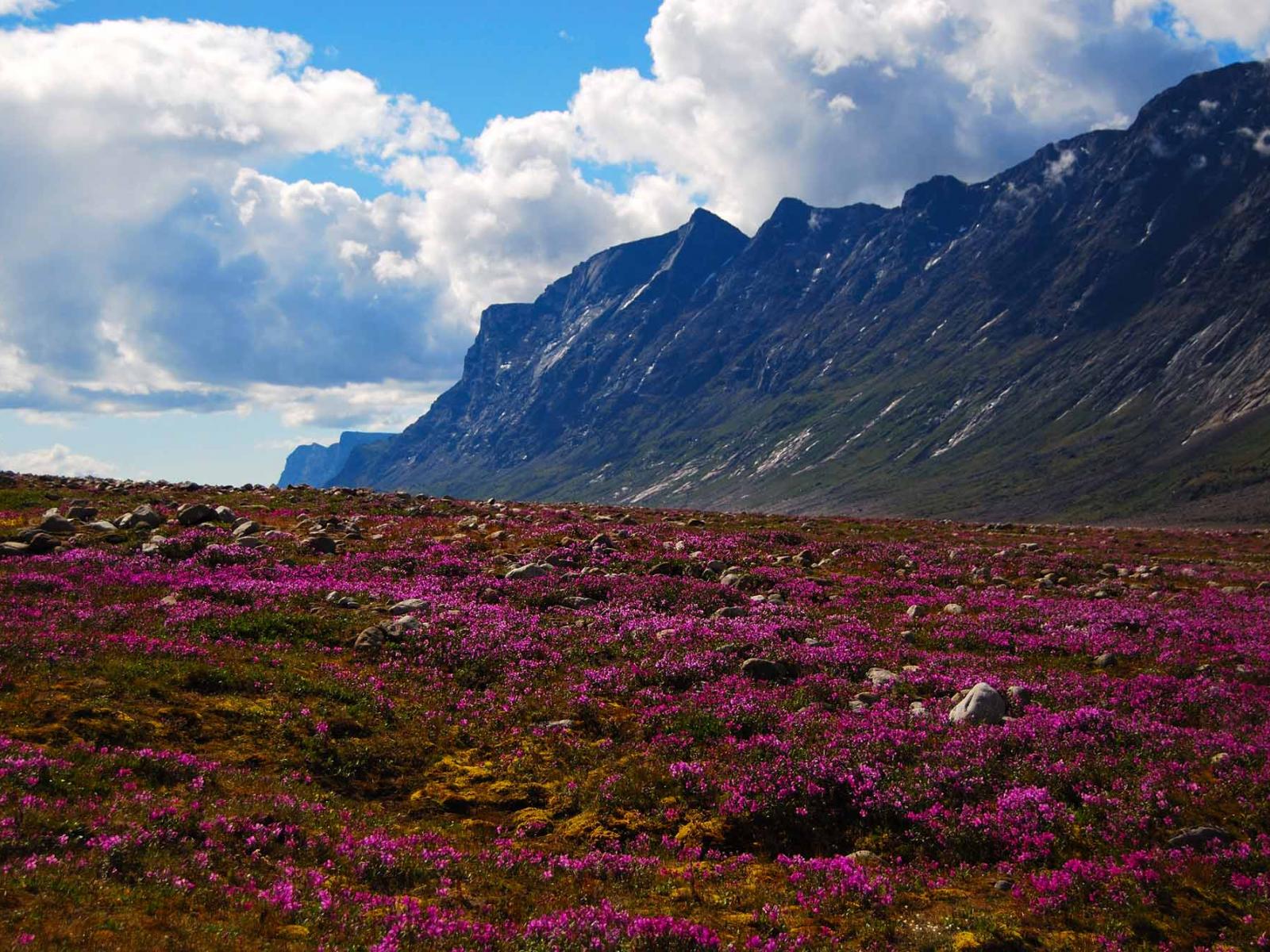 Обои Цветущая природа национального парка Ауюиттук, Канада