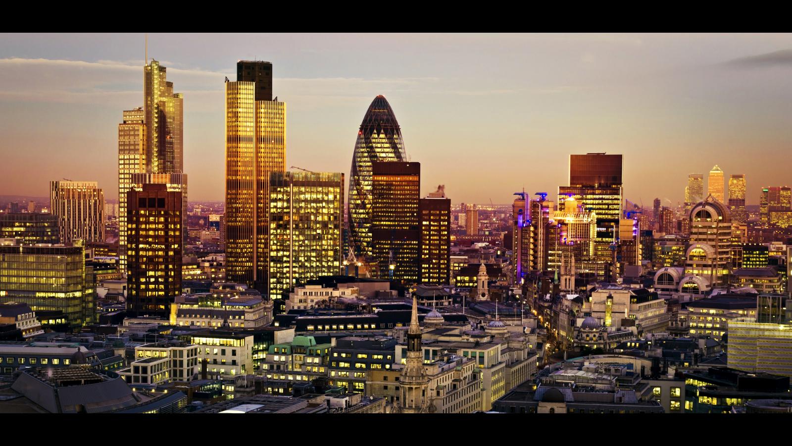 Обои Небоскребы ночного города Лондон, Англия