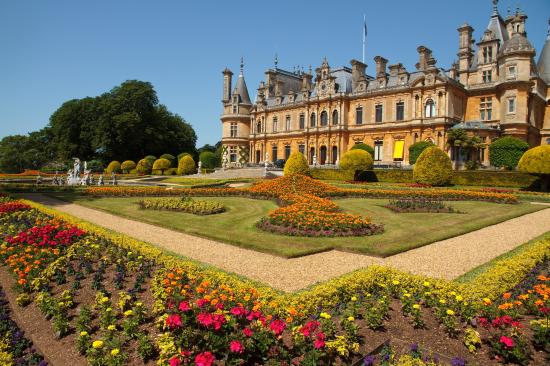 Обои Красивый дворец Поместье Уоддесдон с цветами на клумбах