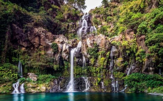 Обои Водопад стекает по скале в голубую воду, Тайланд