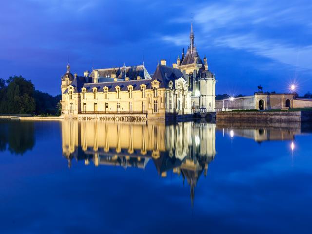 Обои Старинный замок Шантийи отражается в пруду, Франция