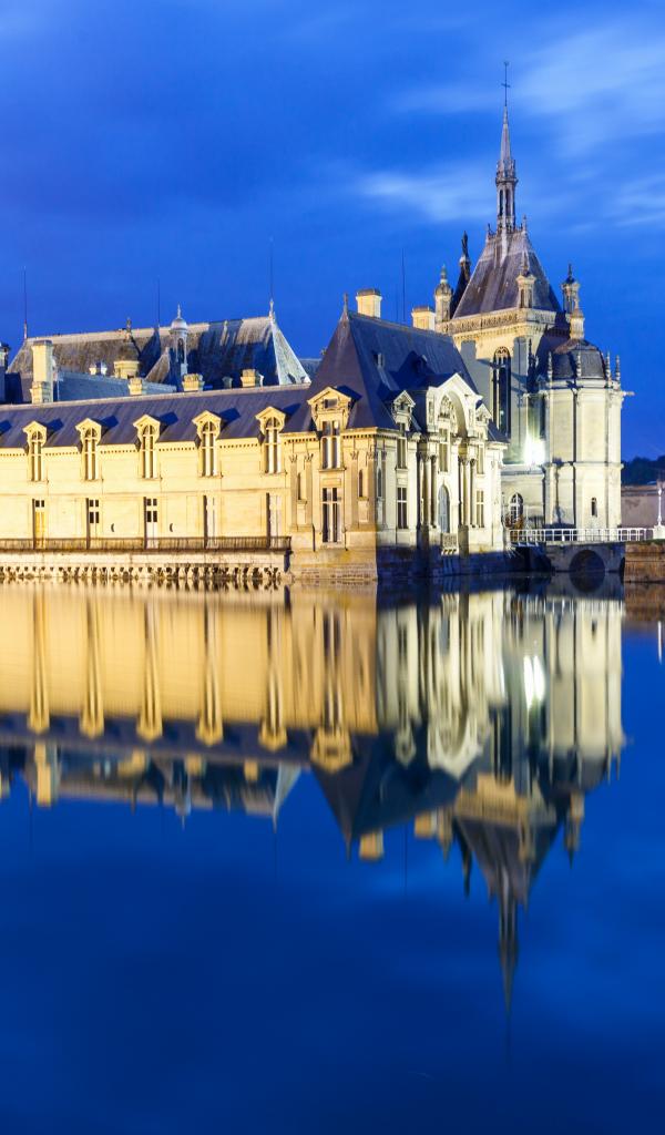 Обои Старинный замок Шантийи отражается в пруду, Франция