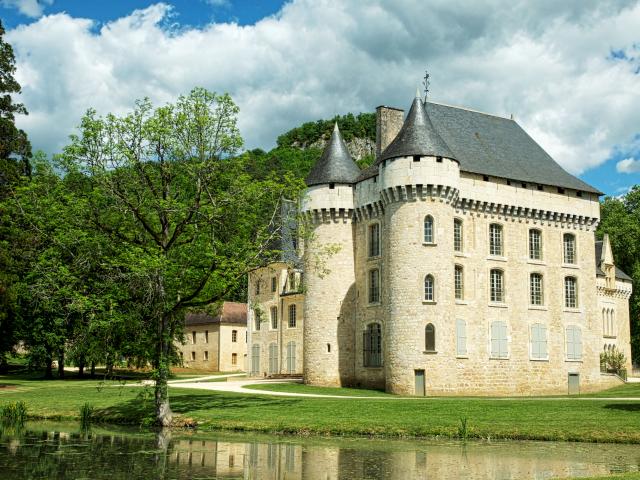 Обои Старинный замок у пруда в зеленом саду, Франция
