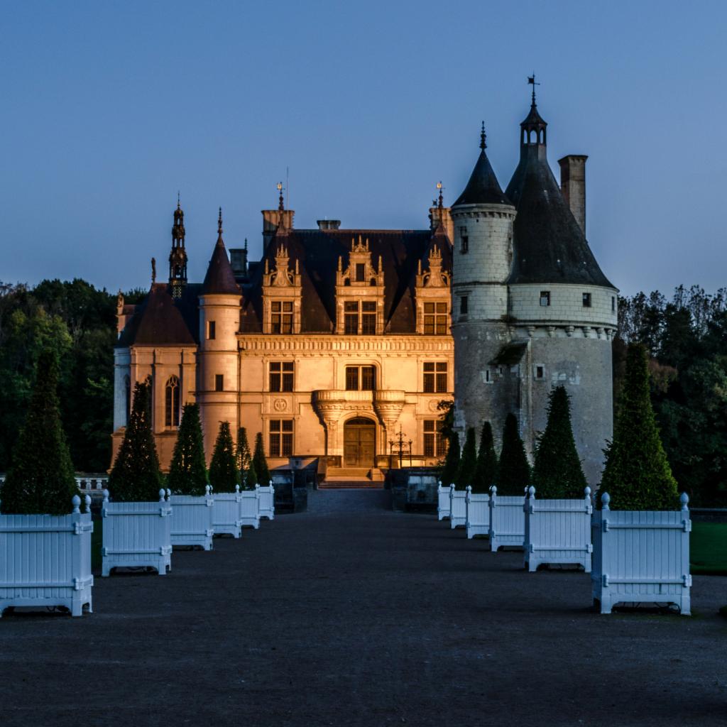 Обои Вид на вечерний замок Шенонсо, Франция
