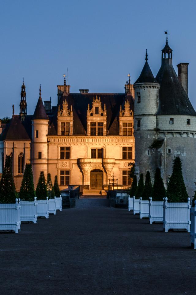 Обои Вид на вечерний замок Шенонсо, Франция