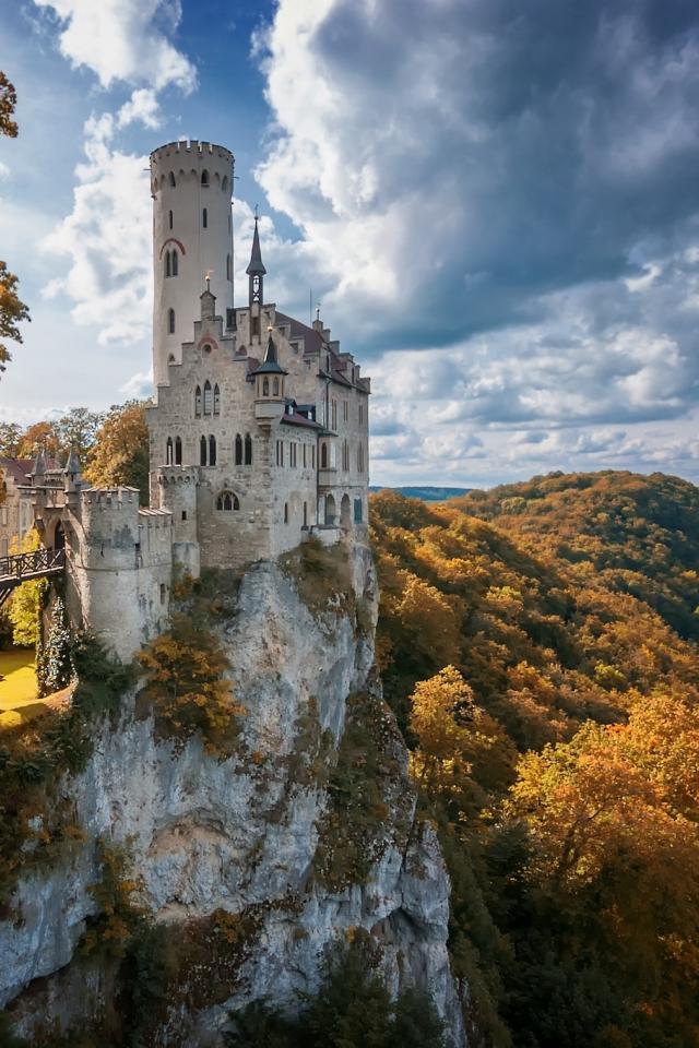 Обои Старинный замок Лихтенштайн на утесе, Германия