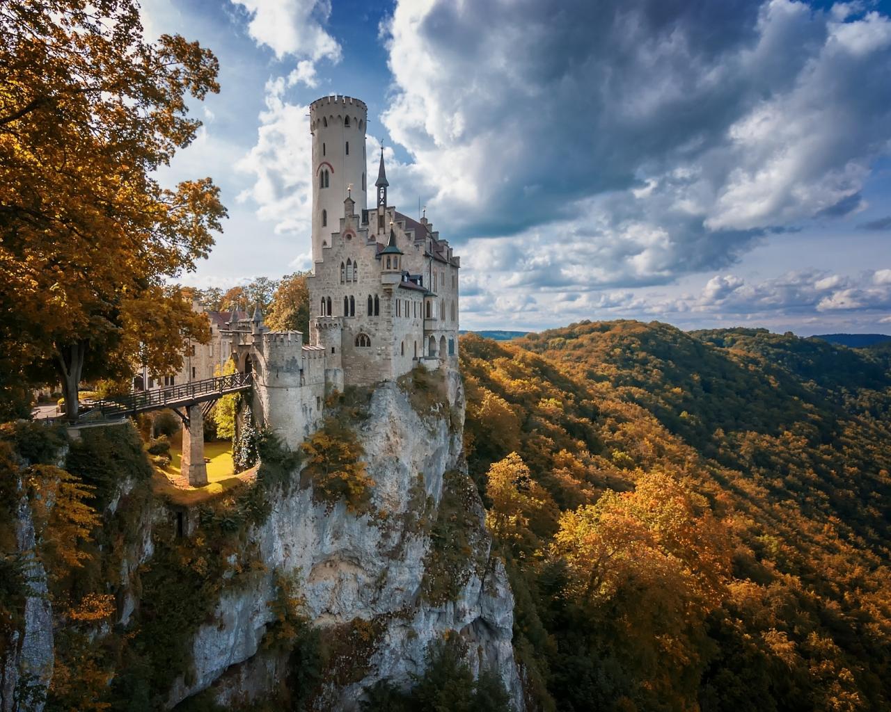 Обои Старинный замок Лихтенштайн на утесе, Германия