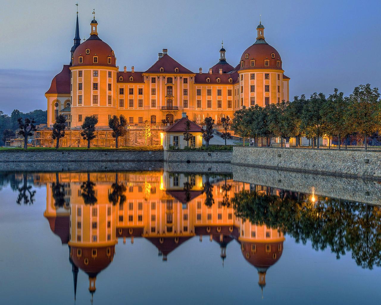 Обои Замок Морицбург отражается в воде. Германия