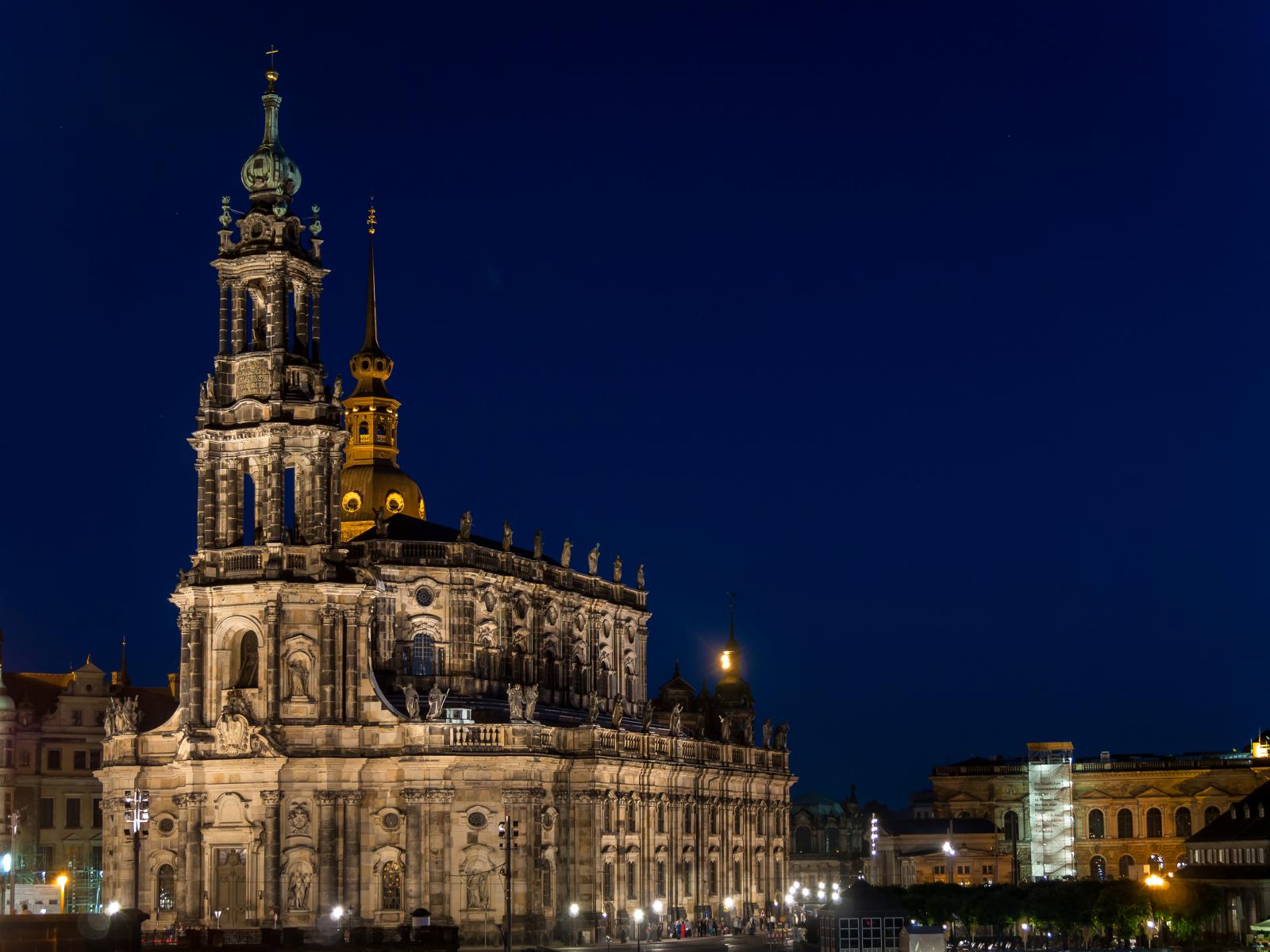 Обои Старинный собор Хофкирхе ночью, Дрезден. Германия