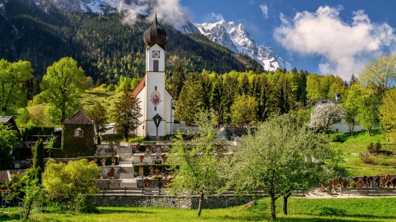 Обои Старая церковь на фоне заснеженных гор, Германия