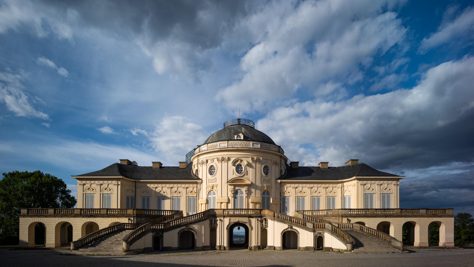Обои Красивый старый дом под небом с белыми облаками, Германия