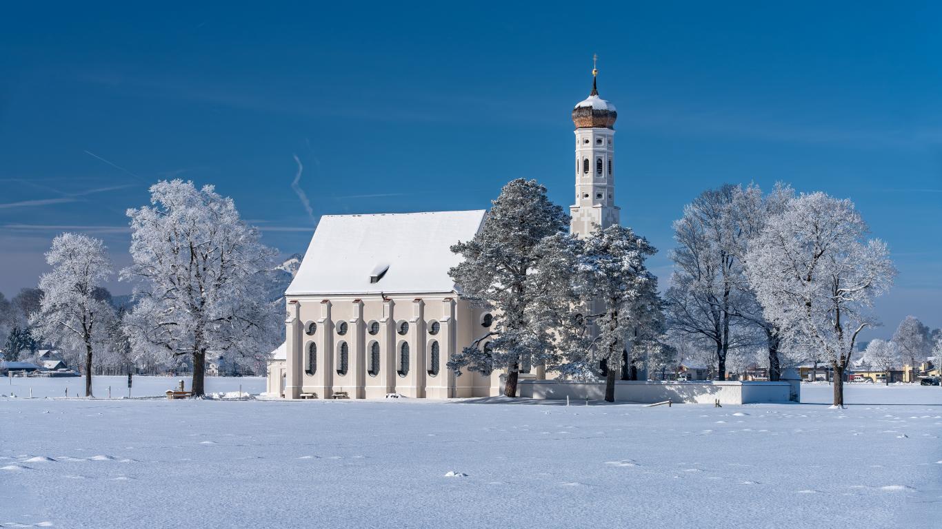 Обои Старая церковь в заснеженном парке, Германия