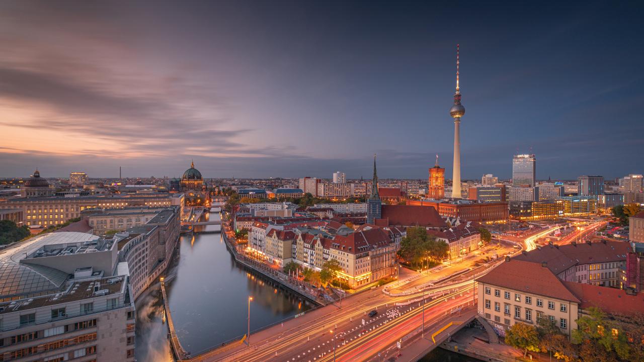 Обои Красивый вид на вечерний Берлин, Германия