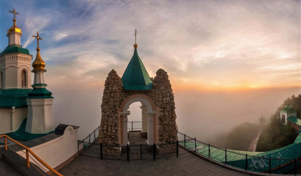 Обои Церковь под красивым небом, остров Санторини, Греция