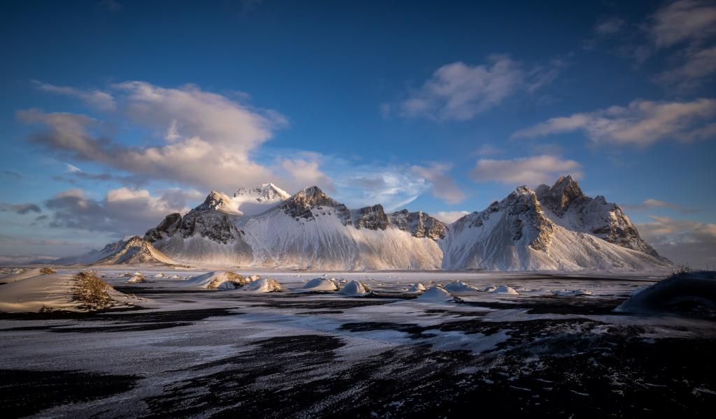 Обои Заледеневшее озеро у заснеженных гор, Исландия