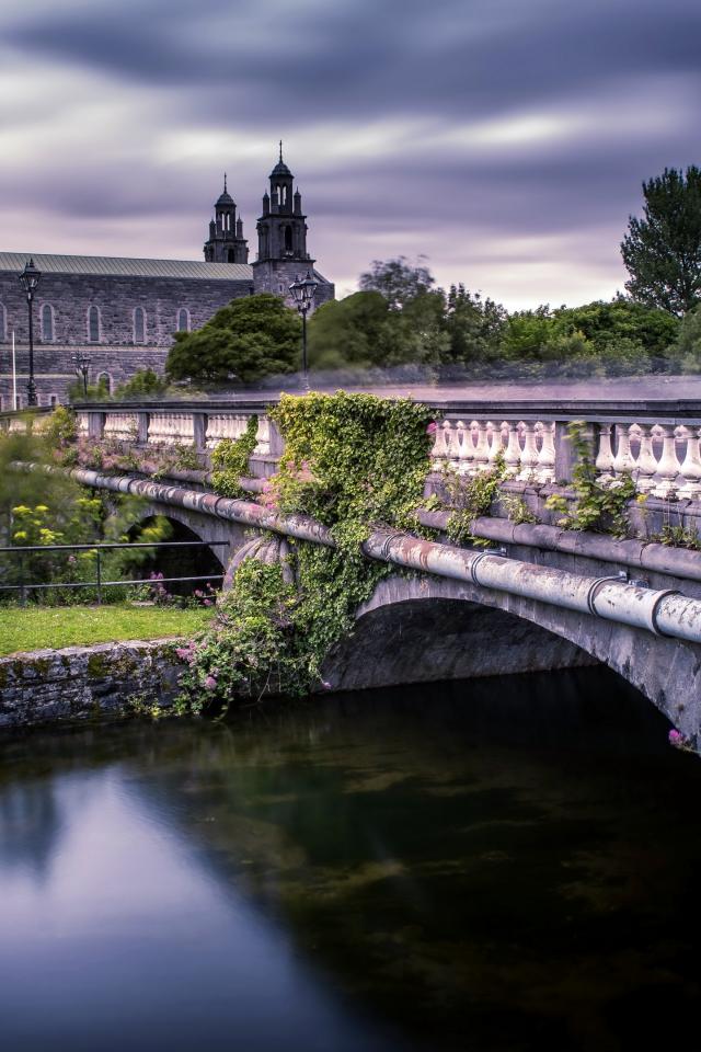 Обои Старинный мост через реку ведет к собору, Ирландия