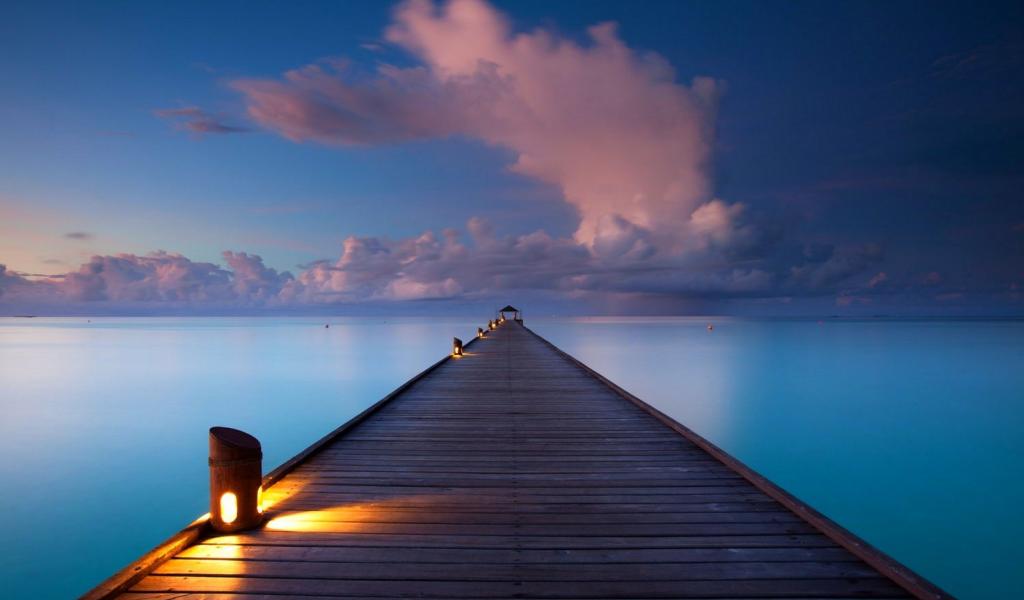 Обои Подсветка деревянного пирса на Мальдивах