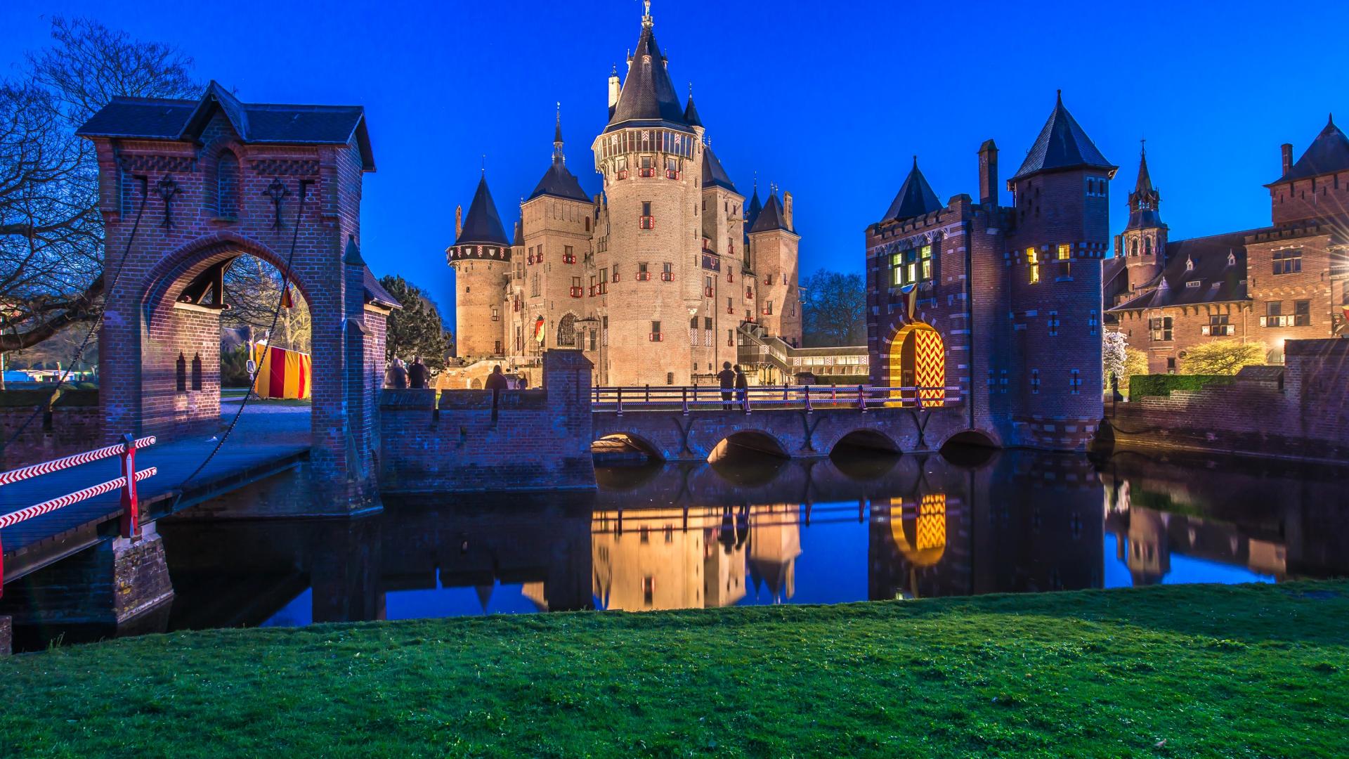 Обои Старинный замок Де Хаар вечером, Нидерланды