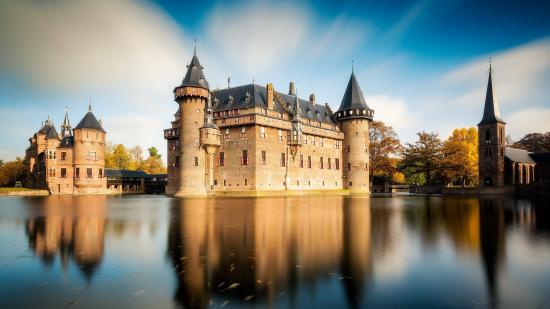 Обои Старинный замок на воде Де-Хаар, Нидерланды