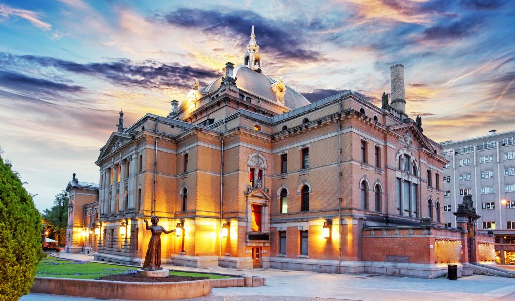 Обои Норвежский национальный театр под красивым небом, Осло. Норвегия