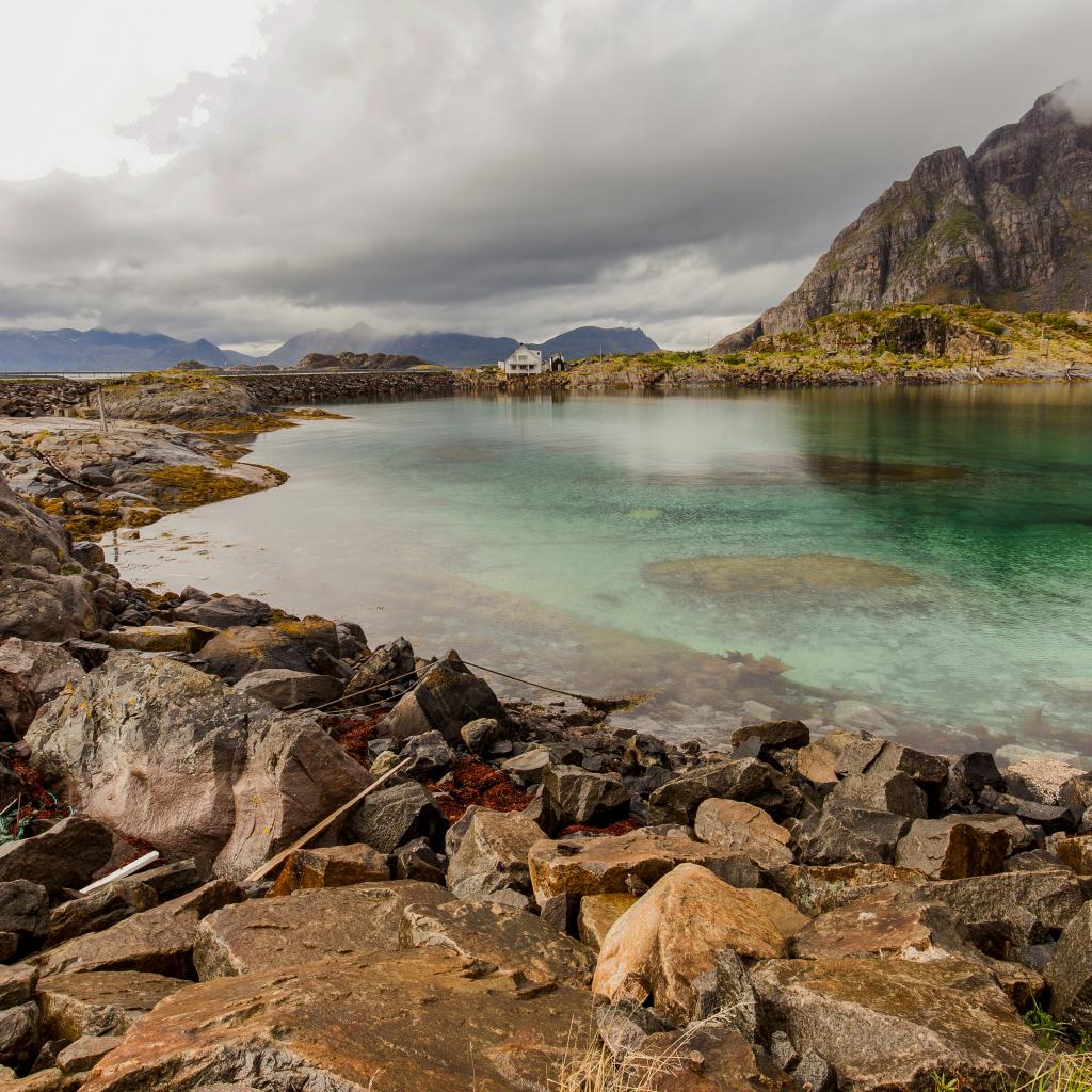 Обои Большие камни на берегу фьорда, Норвегия
