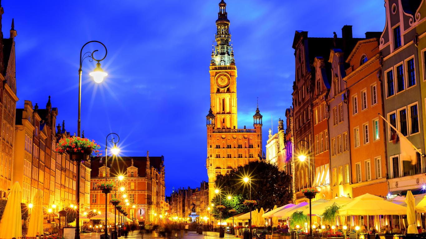 Обои Архитектура города Гданьск ночью, Польша