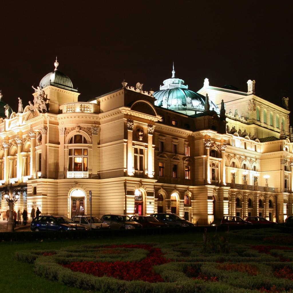Обои Театр имени Юлиуша Словацкого вечером, Краков. Польша