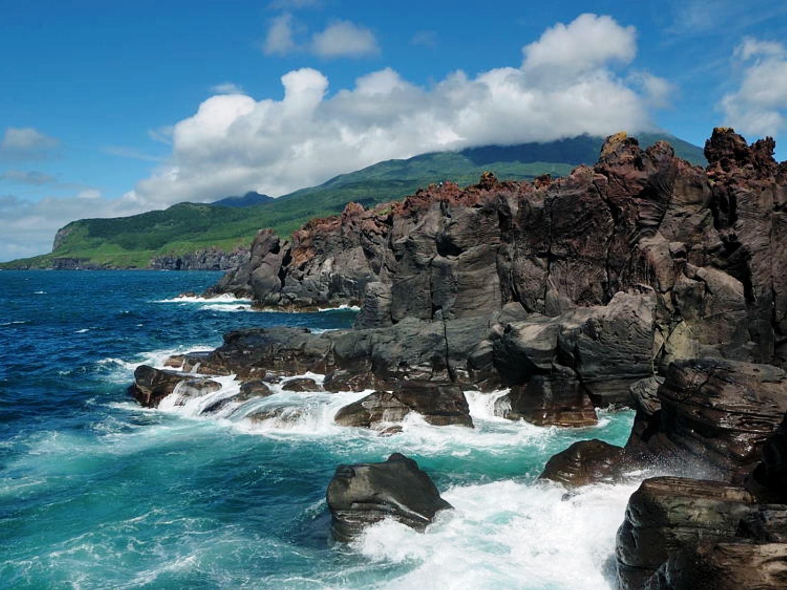 Обои Скалистые берега остров Итуруп, Курильские острова, России