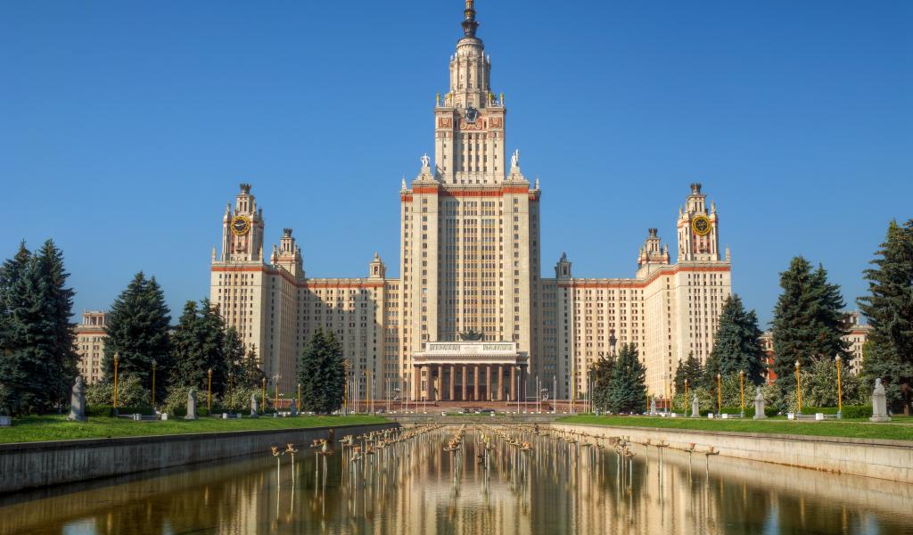 Обои Фонтан у здания московского государственного университета, Россия