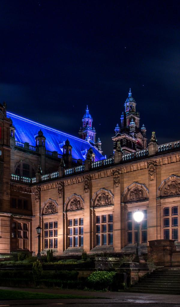 Обои Художественная галерея и музей Келвингроув вечером, Шотландия